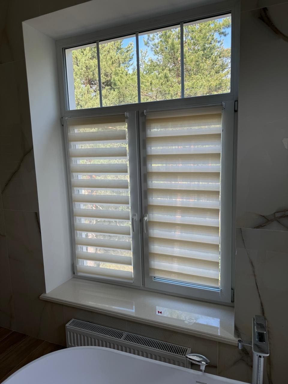 ЗЕБРА – инновационная модель рулонных штор новейшего поколения; имеет двойное полотно с чередующимися полосами плотной декоративной ткани и прозрачной сетки / вуали. Четкие линии ткани визуально расширяют внутреннее пространство, а их декоративное совершенство создает неповторимую гармонию и уют в доме.